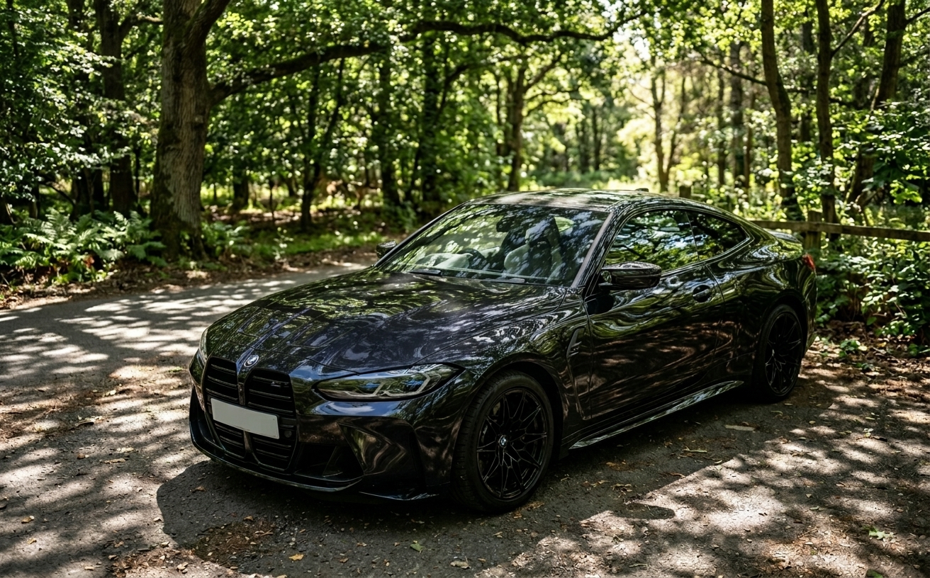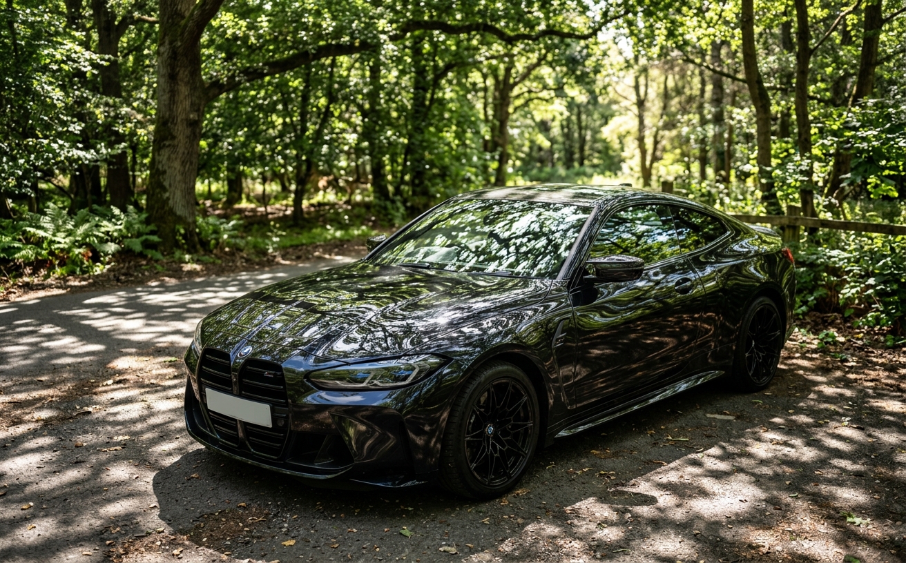 Why dealers struggle here: They photograph at the wrong time of day (high sun creates harsh reflections) in the wrong location (surrounded by reflective objects). Even with optimal conditions, some reflection is unavoidable on glossy surfaces. Post-processing removes what careful photography can't prevent.