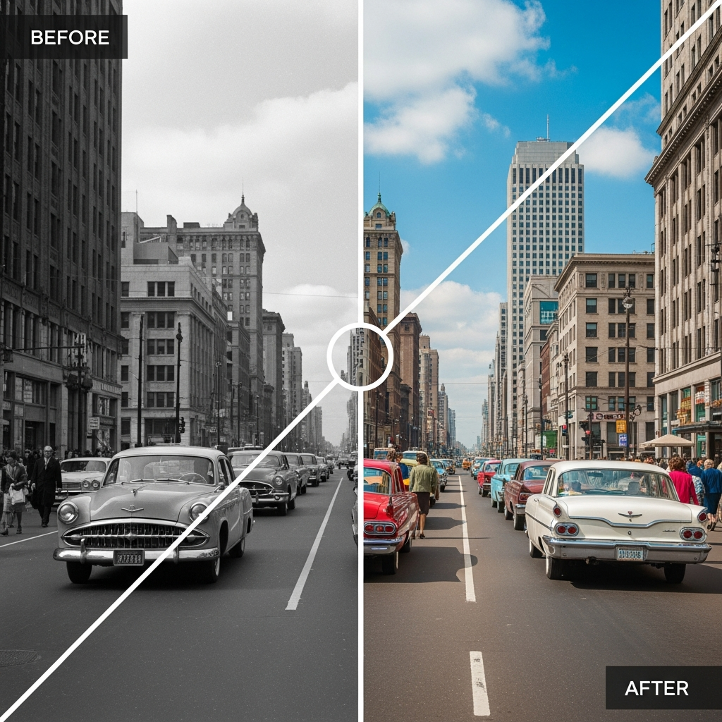 AI colorization analyzes historical context—a 1940s military uniform receives period-accurate colors, a 1960s kitchen gets era-appropriate tones. Skin tones adapt to lighting conditions. Fabric textures influence whether clothing receives matte or glossy treatment. The result: historically plausible colors that make old photos feel immediate and relatable.